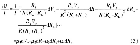 但在實(shí)際情況下電阻的溫度系數(shù)和基準(zhǔn)電壓的溫度系數(shù)將影響輸出電流的穩(wěn)定性。對式(2)進(jìn)行全微分并化簡可得電流穩(wěn)定度的表達(dá)式:
