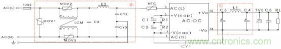 LS03-16BxxSS系列電源,如果需應用在電磁環(huán)境比較惡劣的場合中,為使產(chǎn)品工作穩(wěn)定且不被電磁干擾輕易損壞,建議在電源輸入端口增加相應的EMC外圍電路,以滿足一定指標的電磁兼容性能,如圖(二)所示為推薦電路供參考: