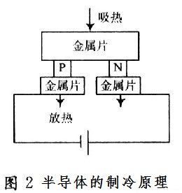 把一個N型和P型半導(dǎo)體的粒子用金屬連接片焊接成一個電偶對。當(dāng)直流電流從N極流向P極時,上端產(chǎn)生吸熱現(xiàn)象,此端稱冷端,下端產(chǎn)生放熱現(xiàn)象,此端稱熱端,如果電流方向反過來,則冷熱端相互轉(zhuǎn)換。