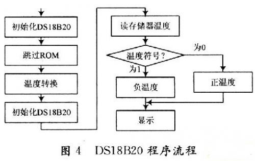 要進行溫度控制,首先要測量所控制目標(biāo)的溫度值,在本系統(tǒng)中,具體使用數(shù)字溫度傳感器DSl8B20與DSP結(jié)合,并利用CCS編寫程序,本系統(tǒng)開發(fā)平臺為CCS 2.2,前期安裝及芯片設(shè)置在此省略,程序流程如圖4所示。